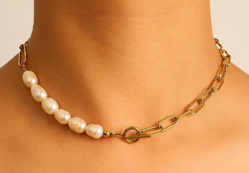 Pearl Jammed is for the ones who live in contrast — part refined, part rebellious. With half polished pearls and half edgy pin chain, this choker strikes a bold balance between soft and strong. Inspired by customers who said, “It just feels like me — polished but a little punk,” it’s made for the girl who can do both. Wear it solo or stack it up — either way, you’re not just accessorizing. You’re making a statement.